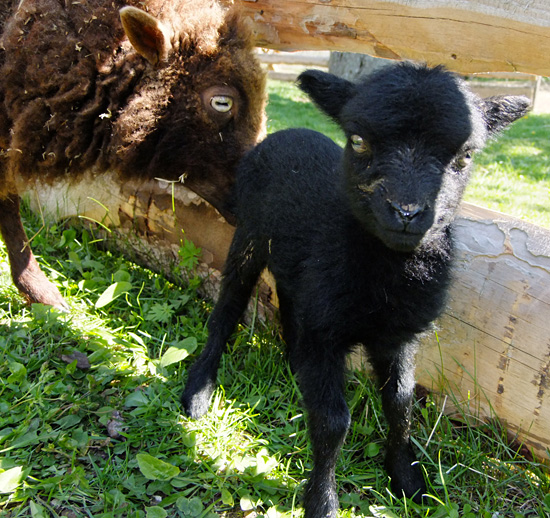 Ďalšie malé čierne jahniatko je baranček, na fotke má iba 4 hodiny, ešte je trochu upatlaný.