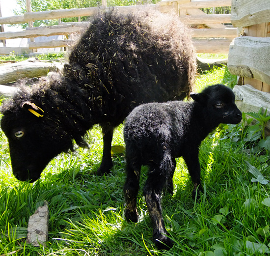 Asi nikdy nepochopím ako naše ovečky presne vedia kedy bude ktorý rok Veľká noc a presne tak si naplánovať pôrody. Nesklamali ma ani tento rok, v priebehu 24 hodín sa nám narodili tri krásne čierne jahniatka. Prvá ovečka, Marlenka, sa vysypala ešte za dosť zlého veterného počasia v stredu večer 16.4., preto sme ju na noc schovali do maštale, kde predošlí majitelia chovali kozy. Ovečky, ktoré porodili ráno (Lentilka) a večer (Medulienka) nasledujúceho dňa, si užívali luxus slnečného dňa a tak i malí ostali so stádom, kde sa pripojila i evakuovaná rodička.